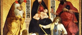 The Altarpiece of St. Giuliano - relevant to the large table of "Madonna and Child, Saints Peter, Paul and Julian and the Archangel Michael" - consisted of four compartments, each of which is a painting on wood 25x 58 cm. From an inscription on the steps of the throne is clear that the altarpiece was executed in 1486 on commission from Cristiano Cecco di Pietro, farrier.