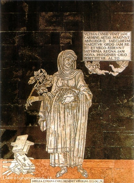 La terza sibilla, famosa per essere stata visitata da Enea, è invece opera documentata di Giovanni di Stefano, come ricorda un pagamento al 19 luglio del 1482. Ricordata da Virgilio nella quarta ecloga, fu celebre nel medioevo come preannunciatrice della venuta di Cristo. L'iscrizione retta da due angioletti in volo deriva infatti da Virgilio: ultima cumaei venit iam carminis aetas magnus ab integro saeclorum nascitur ordo iam redit et virgo, redeunt saturnia regna, iam nova progenies caelo demittitur alto («È ora sopraggiunto l'ultimo periodo del carme cumano, un grande ordine delle età è rinato, ora ritorna la Vergine; ritornano i regni di Saturno. Ora una nuova progenie è inviata dall'alto del cielo»). Appare come un'anziana donna, di una certa severità, con un velo che le cinge il capo. Con la mano destra regge il ramo di vischio della narrazione virgiliana, e con la sinistra stringe a sé tre libri. Altri sei, i Libri Sibillini distrutti nella leggenda di Tarquinio, bruciano impilati sul terreno alla sua destra.