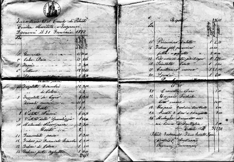 1877, Mercoledì 31 Gennaio - Matrimonio Emilia Petrioli, inventario della dote personale Asciano