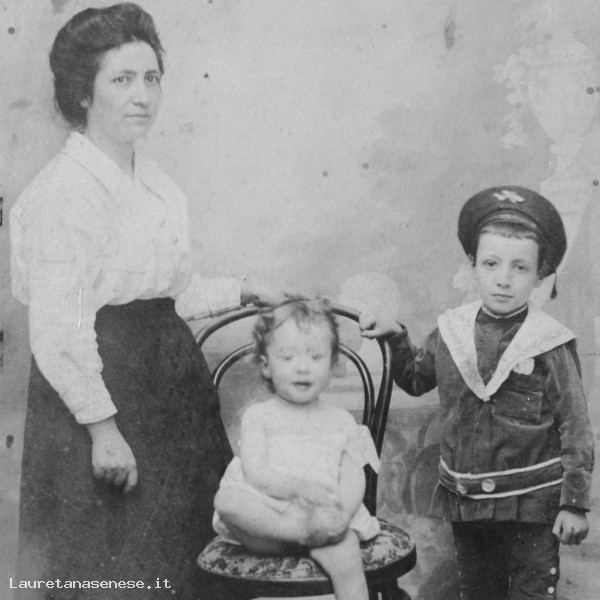 Evidentemente la mamma, orgogliosa dei suoi due figli maschi ha deciso di fissare questo bel momento familiare con una foto scattata in uno studio fotografico, riteniamo di Siena. allora in provincia non c'erano ancora fotografi professionisti.