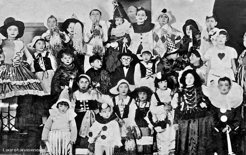 Bella foto riguardante i bambini ascianesi in maschera. Di tutti i presenti si riconoscono solo:
