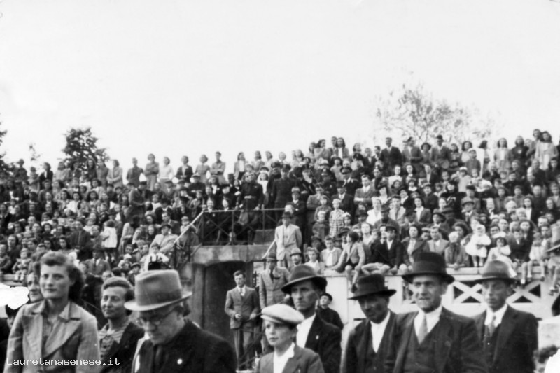 Cittadini ascianesi sulle le tribune e immediatamente sotto, assistono alla manifestazione pubblica in onore dell'allora ministro: Achille Starace.