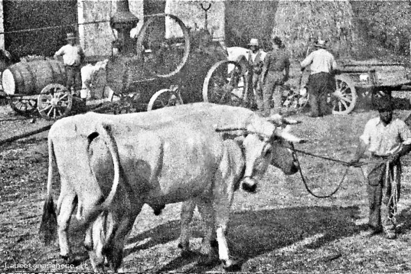 1944 - I buoi da traino per il trasporto del grano trebbiato Asciano