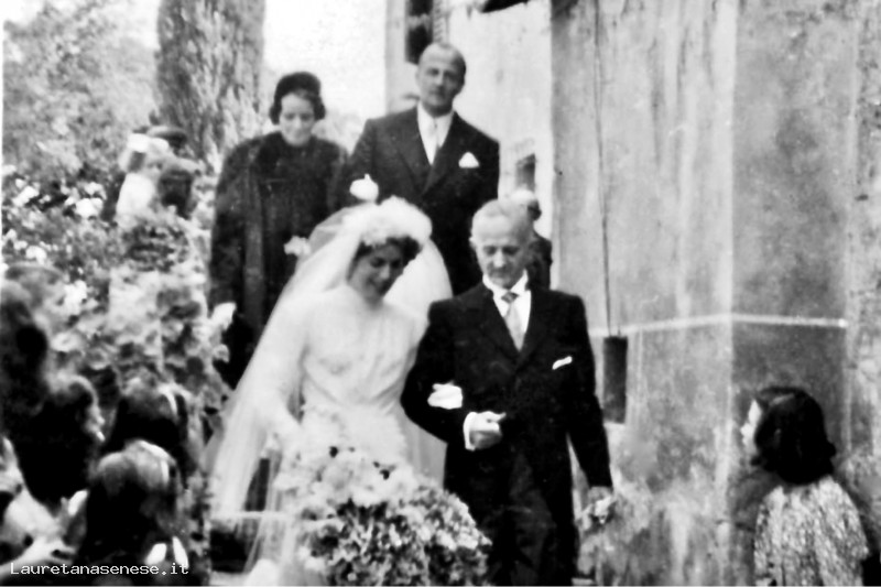 La sposa è affiancata dal padre e dietro lo sposo Giorgio è affiancato dalla moglie del Marchese Bargagli.
