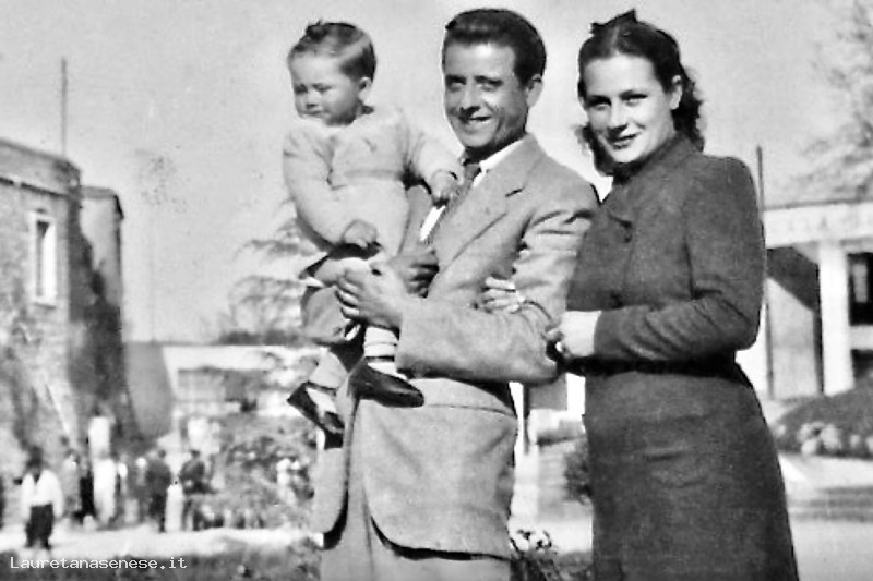 Attilio Giannettoni si è fatto fotografare con la moglie Vilma Bernini e il figlioletto Enzo ai giardini pubblici, quando ancora non c'erano i grandi abeti.