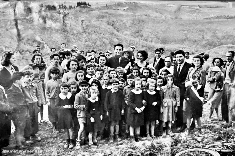 Lo scatto fu effettuato per ricordare la partecipazione come comparse di tutti gli scolari del luogo, ad un film girato nei dintorni di Monte Oliveto Maggiore.