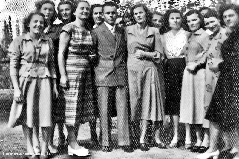Gli sposi, contornati da amiche e parenti, presso l’abitazione dello sposo:
