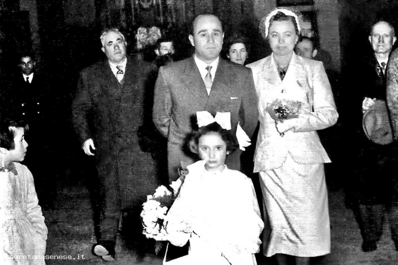 La bambina con i fiori che precede gli sposi, all'uscita da Sant'Agostino, è Luciana Tozzi di circa 7 anni.