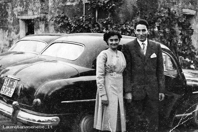 Luogo dello scatto: la Fontasciano, davanti al Fiat 1400 diesel che Aldo Zampi noleggiava per i matrimoni.