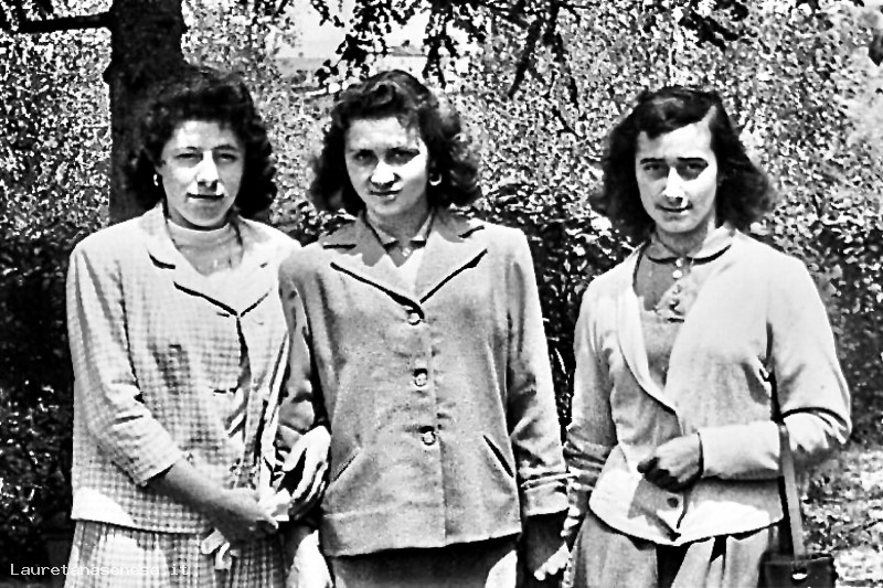 Durante un corso di cucito svoltosi nei locali dell'Avviamento Professionale a san Francesco, alcune amiche si fanno ritrarre nella piazzetta antistante la scuola.