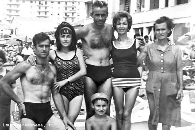 Le due sorelle con la mamma e i rispettivi compagni, sulla spiaggia di Senzuno a Follonica.