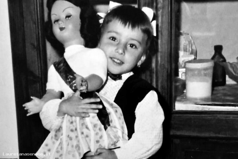 La felicità gli si legge negli occhi per il regalo della bambola, ricevuto da babbo Marcello.