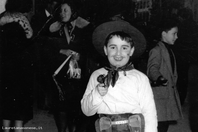 Spartaco partecipa da bambino al Carnevale locale vestito da cowboy.