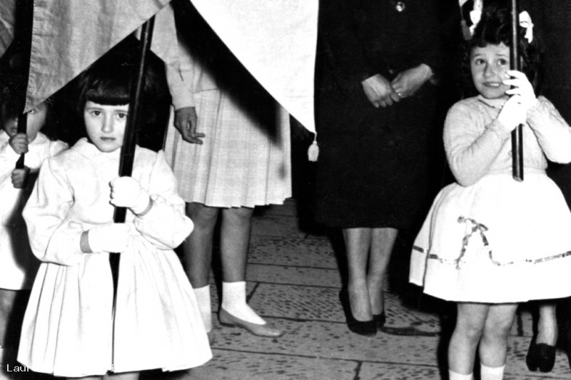 Nella processione del Venerdì Santo, le bambine più grandicelle erano incaricate di portare i cartelloni con frasi dei Sacri Testi.