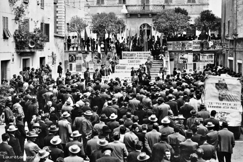 Tutti i cortei del 1° Maggio si concludevano con un comizio generalmente fatto nella piazza principale del paese: Piazza Garibaldi.