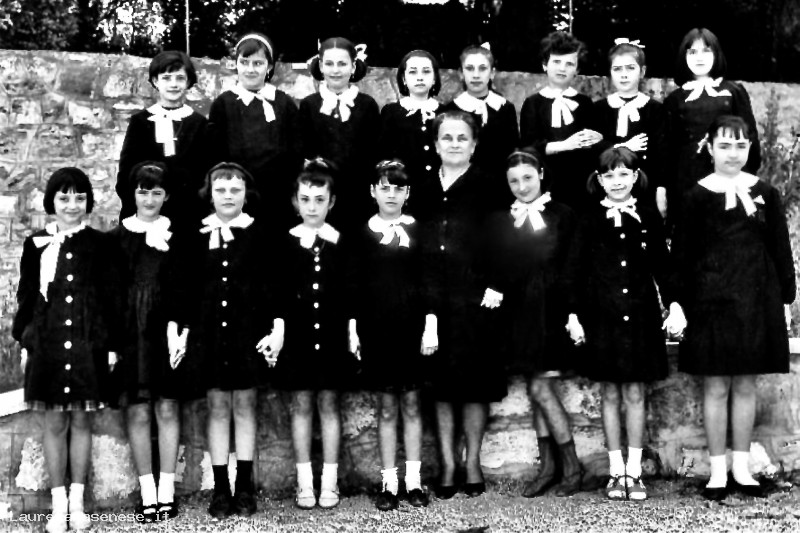 Alunni: Marilena Marcocci, Mirella Francini, Luciana Magini, ?, Marilena Volpe, Tiziana Del Santo, Michela Nannotti, Ilda Benocci, Rita Giannettoni, Alessandra Mancini, Marcella Papi, Enza Direnzone, Sandra Moscatelli, Francesca Sadotti, Carla Maffei, Sandra Braconi.