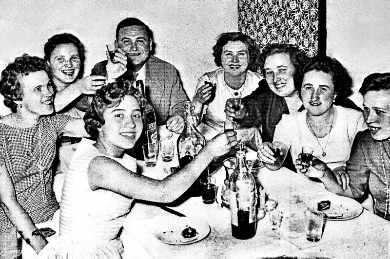 1964, Domenica 25 Ottobre - Pranzo di nozze: Renata con le amiche Asciano