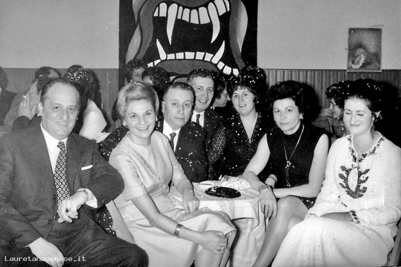 Il gruppo dei sliti amici seduto attorno ad un tavolo in sala da ballo: