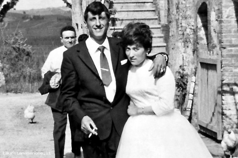 1964, Sabato 25 Aprile - Gli sposi nell'aia dopo il pranzo Asciano