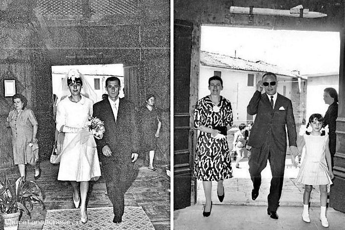 1965, Domenica 11 Luglio - La sposa Carla all'ingresso in chiesa con i genitori Asciano