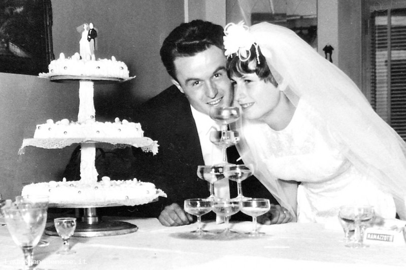 Al termine del pranzo nunziale, gli sposi si cimentano nella tradizionale bevuta contemporanea dello spumante: