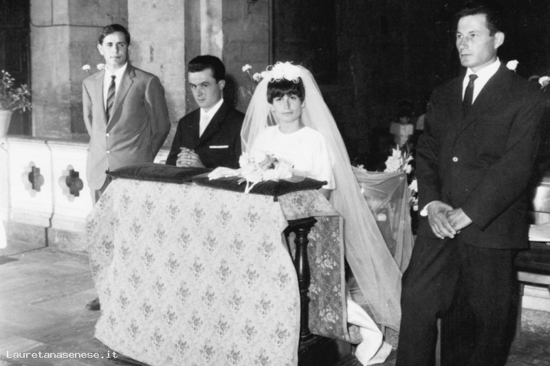 Gli sposi e i testimoni al momento della cerimonia nunziale in Collegiata.