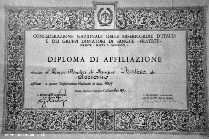 1967 - I Donatori di Sangue aderiscono alla Confederazione Nazionale Asciano
