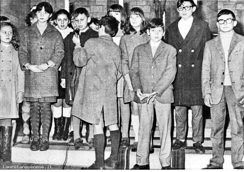 Dovrebbe trattarsi degli alunni della seconda B delle Medie, durante una recita effettuata per le vacanze di Natale
