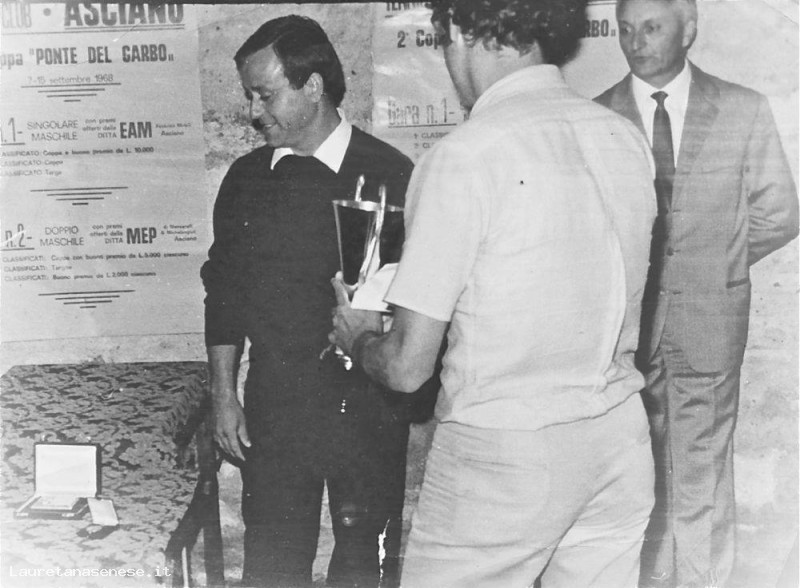 Forse non tutti sanno che il primo campo da Tennis di Asciano fu realizzato da un gruppo di ragazzi nell'orto del prete. Fu una lotta dura, perchè l'allora parroco don Sadotti non era molto propenso a privarsi di una parte dell'orto annesso alla parrocchia.