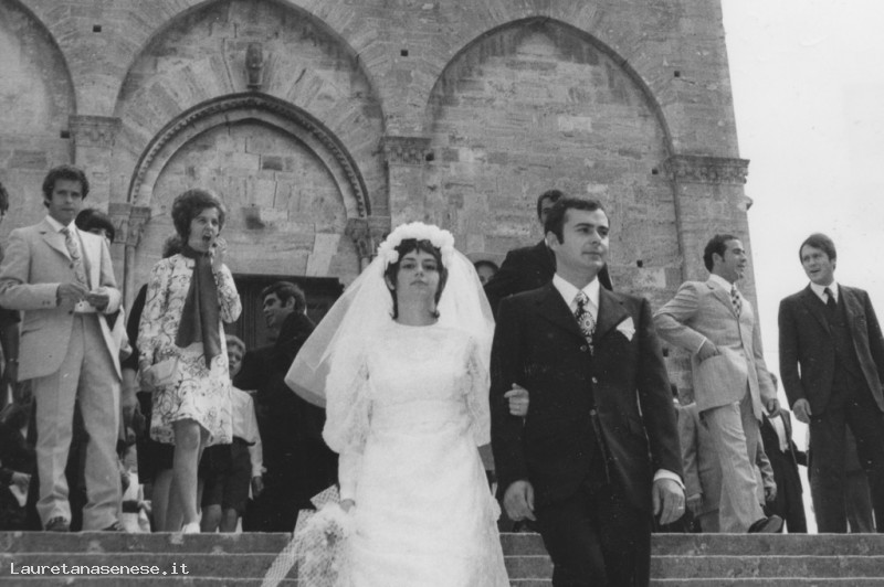 1970 - Gli sposi sulle scale della chiesa Asciano