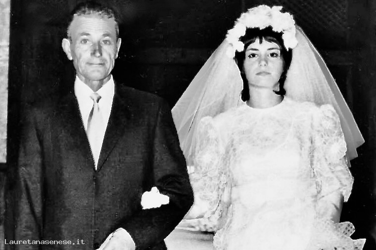 Come di prassi, il padre accompagna la propria figlia all'altare, per il suo matrimoni. Il gesto simbolico sta a significare l'affido della propria figli alla tutela di un altro uomo; il futuro marito.