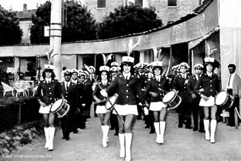 Sfilata con le Majorette, lungo l'anello del Campo Sportivo Guglielmo Marconi, per l'inaugurazione della Fiera Campionari dell'Artigianato Ascianese nel 1971.