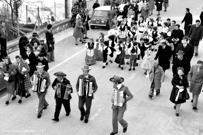 In fondo alla sfilata, un gruppo di fisarmonicisti fra i quali si rivonoscono. Marino Centini e Aldo Ugolini.