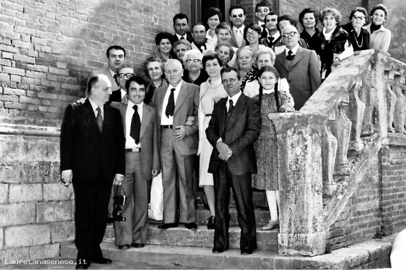 Un grande gruppo di persone, tutte ascianesi, sulle scale della chiesa di Sant'Agostino. Chi riconoscete?