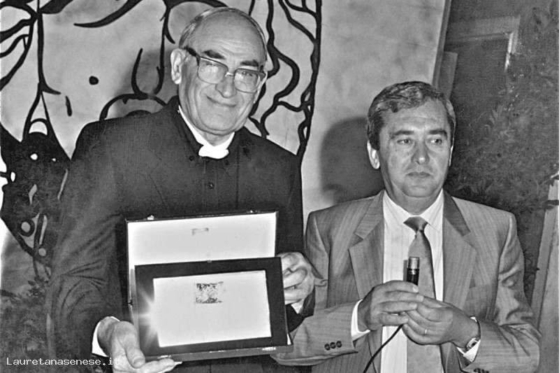1986 - Garbo d'Oro, don Sadotti mostra il suo premio Asciano