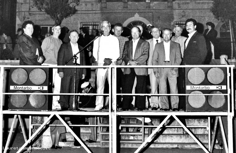 1990, 25° Festa del Donatore Fratres: gli organizzatori sul palco Asciano