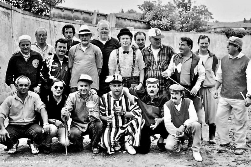 La foto ritrae i partecipanti al palio delle Vecchie Glorie,