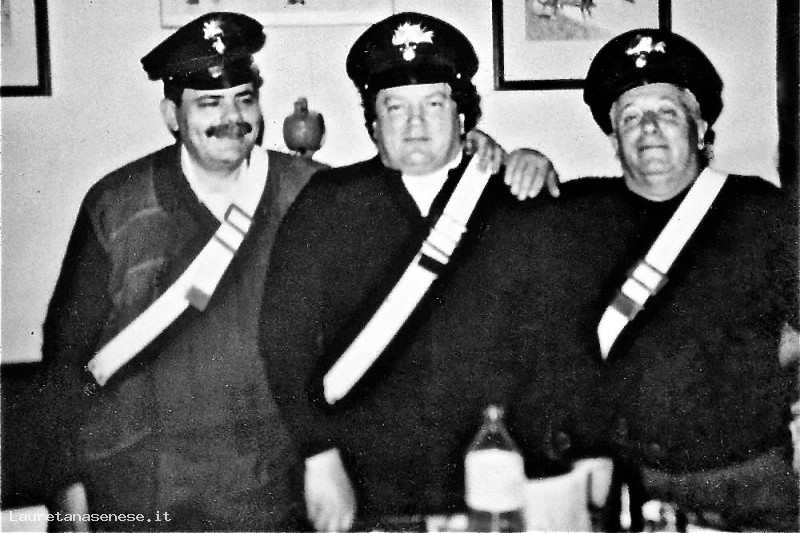 Tutte le epoche hanno avuto in paese i personaggi rappresentanti l'allegria e il buon vivere. In questo caso sono rappresentate tre persone che giornalmente si ritrovavano a far colazionne al bar gelateria di "Baffo":