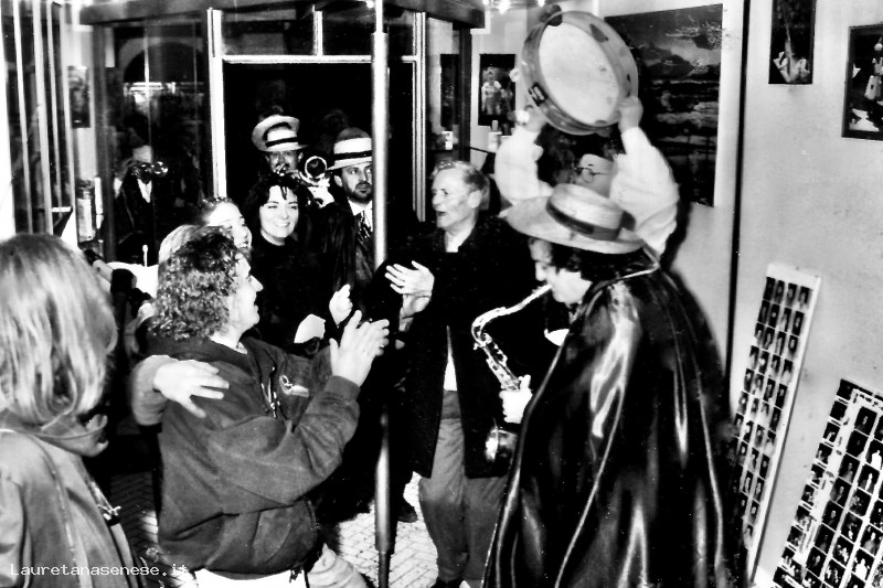 Fra i tanti presenti, attira l'attenzione il sassofonista con la paglietta in testa.