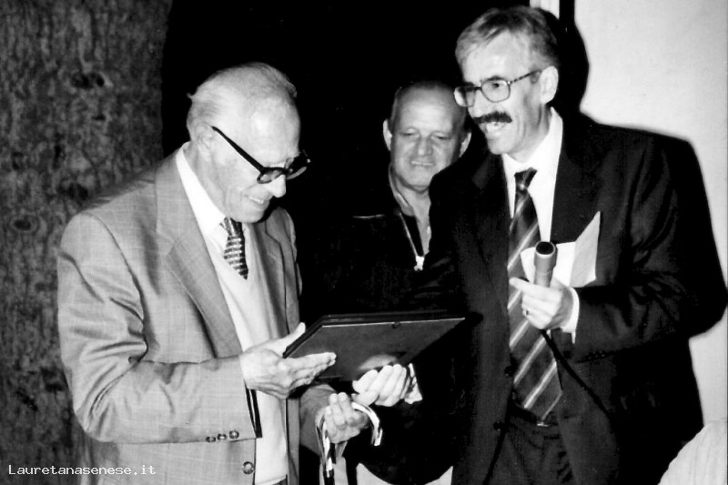 Nella foto, l'allora presidente della Pro Loco: Marco Maffei, gli consegna una targa ricordo come "Menciaiolo Doc"