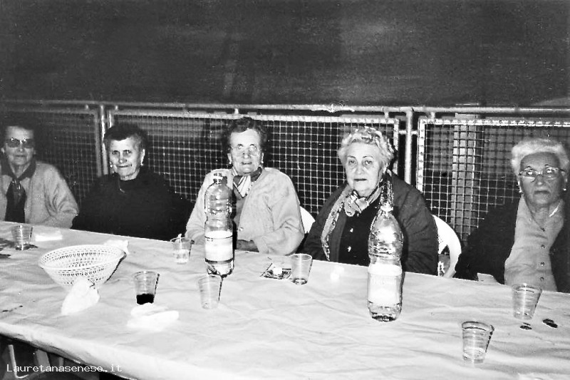 Partecipazione collettiva delle nonne alla cena della Contrada del Prato, prima del palio dei Ciuchi.
