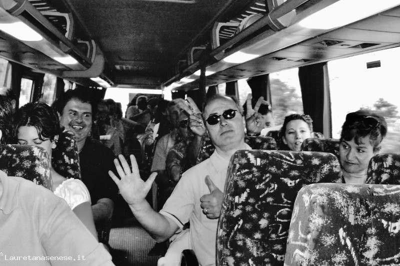 2003 - Gita Donatori a Gradara: L'allegra brigata sul pullmann Asciano