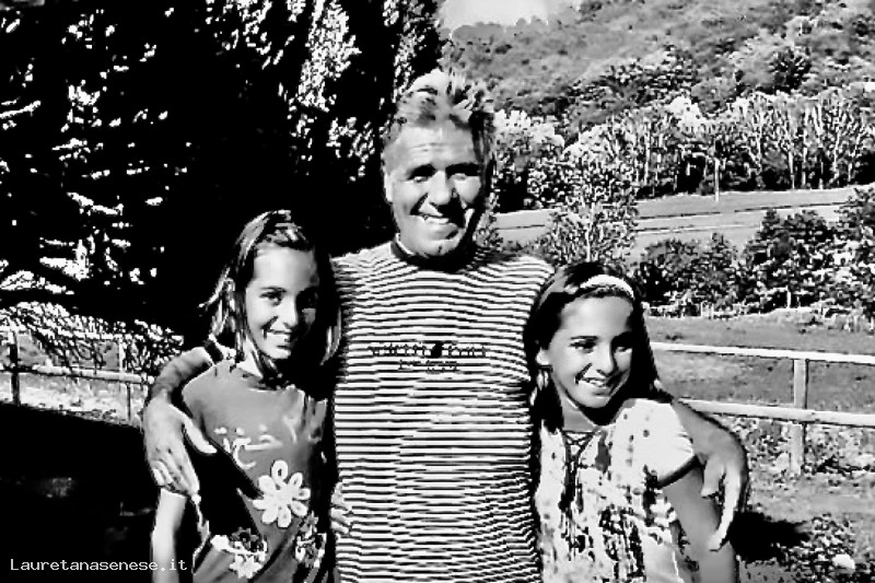 Lr due nipotine pisane di Rosanna Giustarini, la figlia maggiore di Romanino, in visita all'allevamento di cavalli di Andrea Degortes, si uniscono volentie a lui per una foto ricordo.