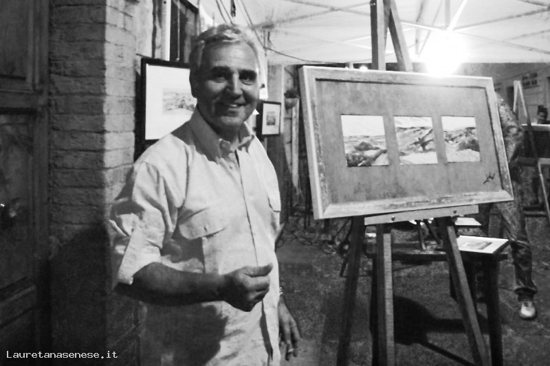 Mario Boni, un bravo pittore per passione, espone le sue opere durante un "Mercoledì d'Asciano" di Agosto.