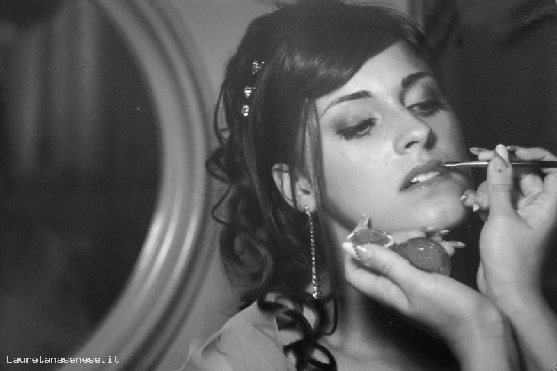 Giulia Galli agli ultimi ritocchi del "Make up" da parte di Fabiola Lombardo, professionista di "Tocco di Venere".