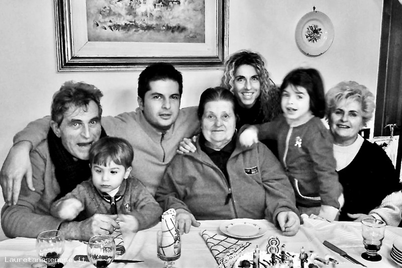 Ilva Magini coniugata Maraghini, festeggiata da figli, nipoti e e bisnipoti, il giorno del suo ottantaseiesimo compleanno.