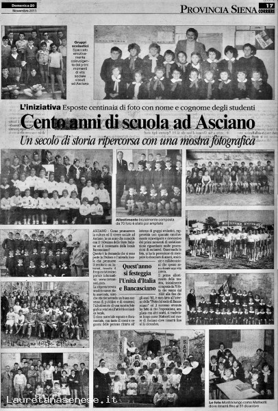2011, 20 Novembre - Notizie sulla prima esposizione di foto scolastiche Asciano