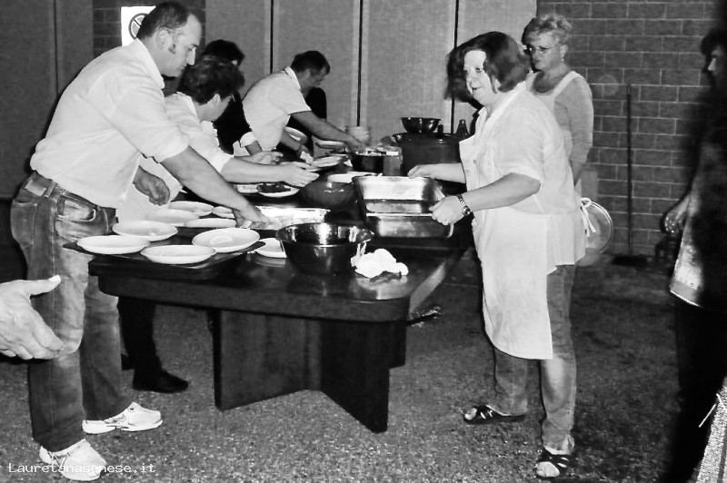 Cuochi e camerieri indaffaratissimi per il gran numero di partecipanti all'evento.
