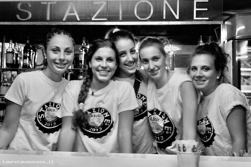 Al bar della contrada, allestito nel parco della Stazione.