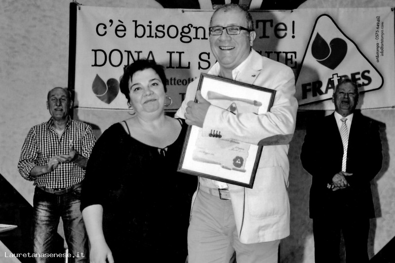 Considerato però che Claudio Bardelli è ancora oggi un dirigente del Gruppo Donatori, pensiamo si tratti della consegna di un attestato di collaborazione ad Alessandra Fratagnoli, sempre pronta a dare una mano per la realizzazione di eventi legati all'Associazione Donatori.